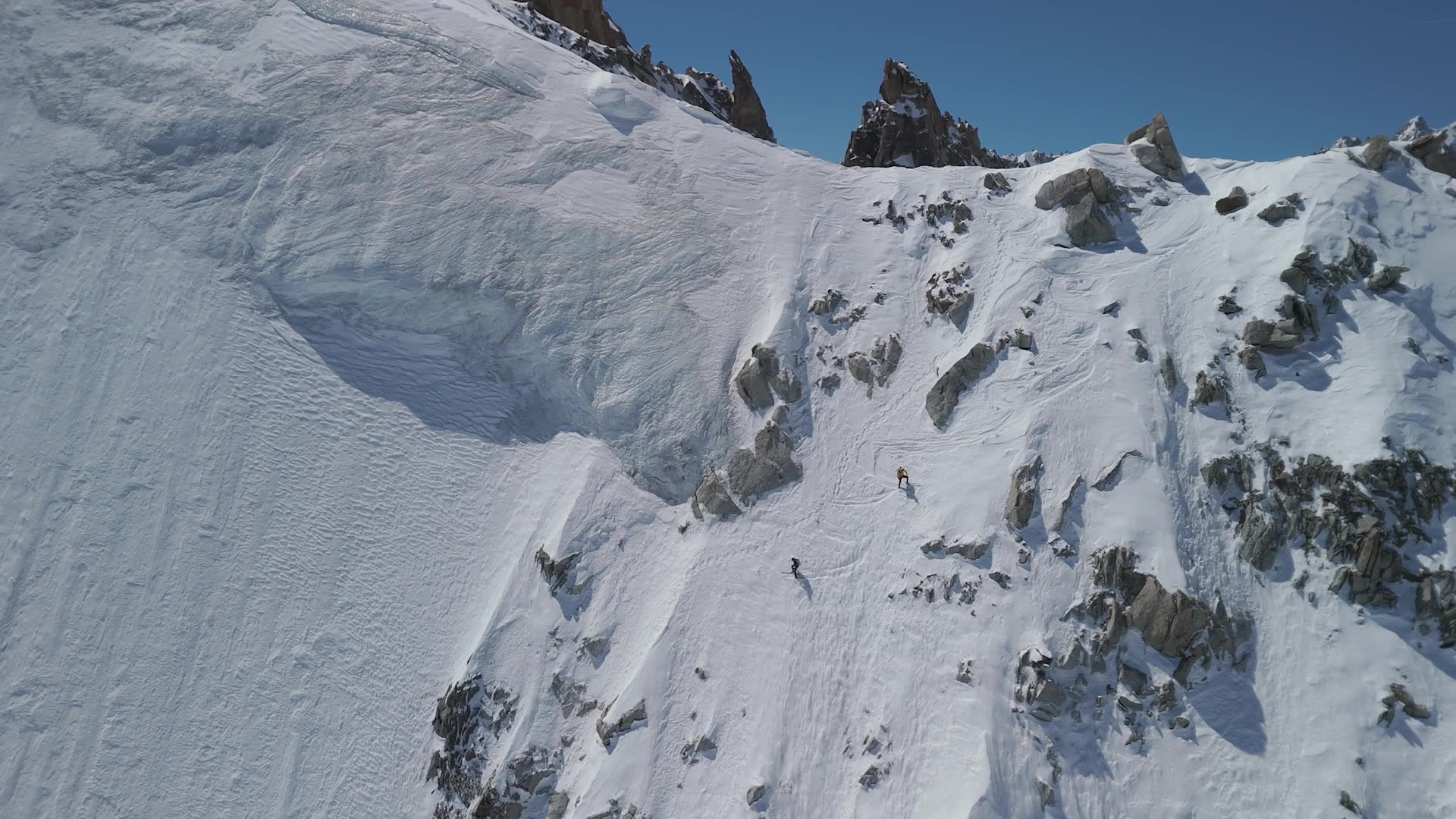 Après avoir franchi l’Aiguille Verte (4 122 m) puis celle d’Argentière, le duo conclut son périple par le Chardonnet. La descente par l’éperon Migot et la face nord du Chardonnet s’effectue dans des conditions idéales, un point final à cette traversée inédite qui vient d'être gravée dans la neige du massif du Mont-Blanc.