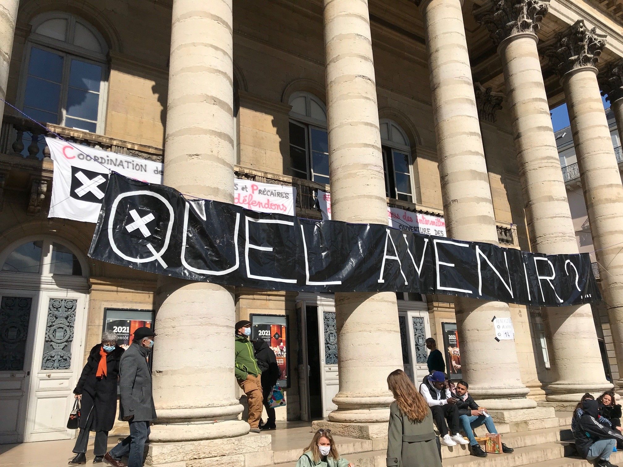 A Dijon, les intermittents du spectacle occupent le Grand Théâtre depuis lundi 15 mars. Ce samedi 20 mars vers 14 heures, une manifestation de soutien s'est tenue, rassemblant 300 à 400 personnes.