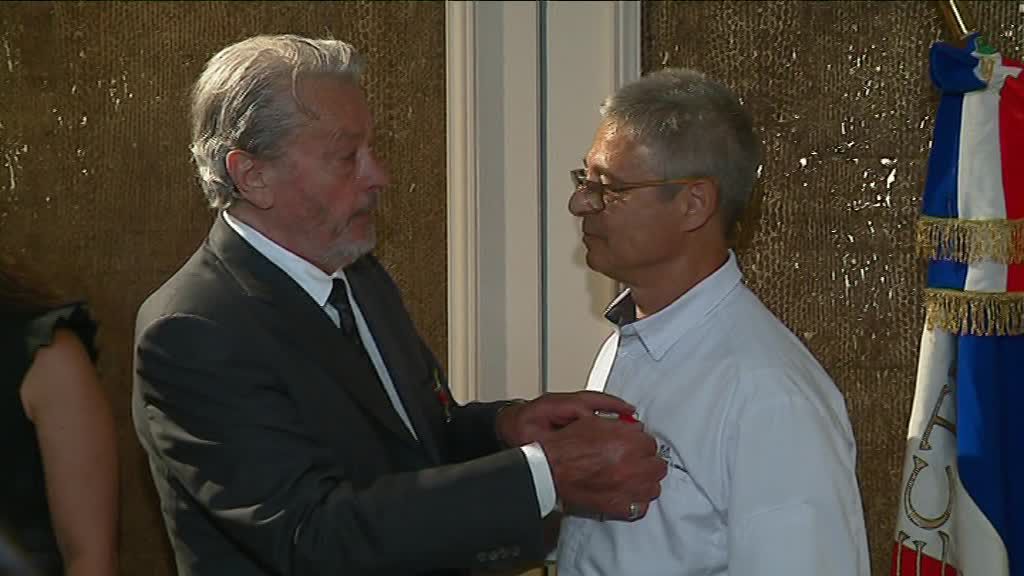 Le chef gastronomique Jean-Michel Lorain, propriétaire de la Côte Saint-Jacques, à Joigny, dans l'Yonne, a été décoré de la prestigieuse Légion d’honneur par son ami et icône de la culture du cinéma français, Alain Delon, lundi 28 mai 2018.
