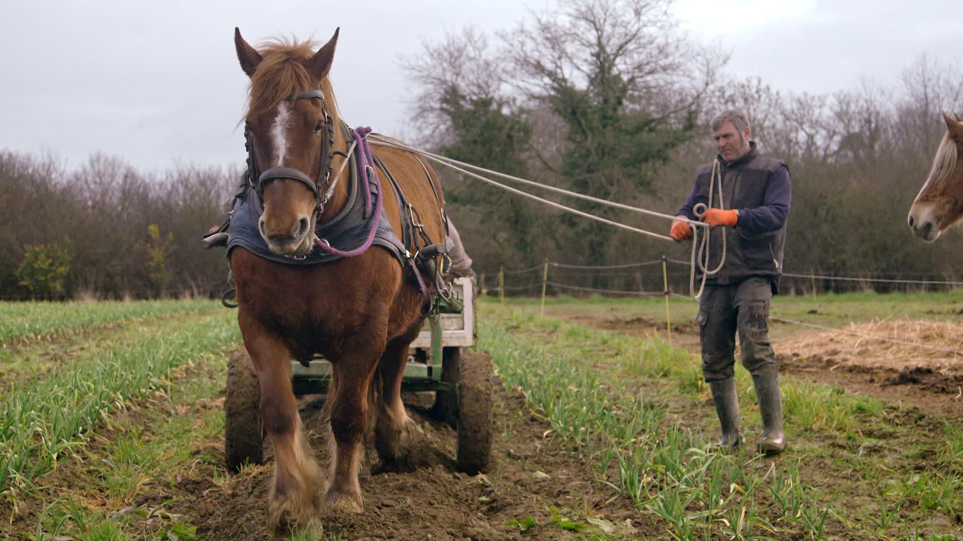 Pour l'éleveur Stéphane Galais, que Mathurin Peschet rencontre dans son champ, où il laboure la terre avec sa jument, il y aurait un autre chemin : celui de la paysannerie.