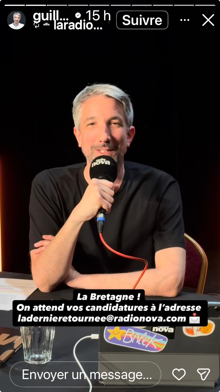 Dans le cadre d’une tournée d’été programmée de la mi-juin à la mi-juillet, son émission "La Dernière" diffusée sur Radio Nova devait être enregistrée en public le 16 juin à Auray. Mais elle a finalement été déprogrammée.