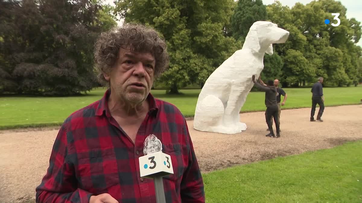 Elle mesure plus de 3,5 mètres de haut et pèse près de 500 kgs : la sculpture monumentale du Tourangeau Michel Audiard a été installée ce jeudi 11 juin dans le parc du château de Cheverny. Elle représente un chien français tricolore de la meute du château.