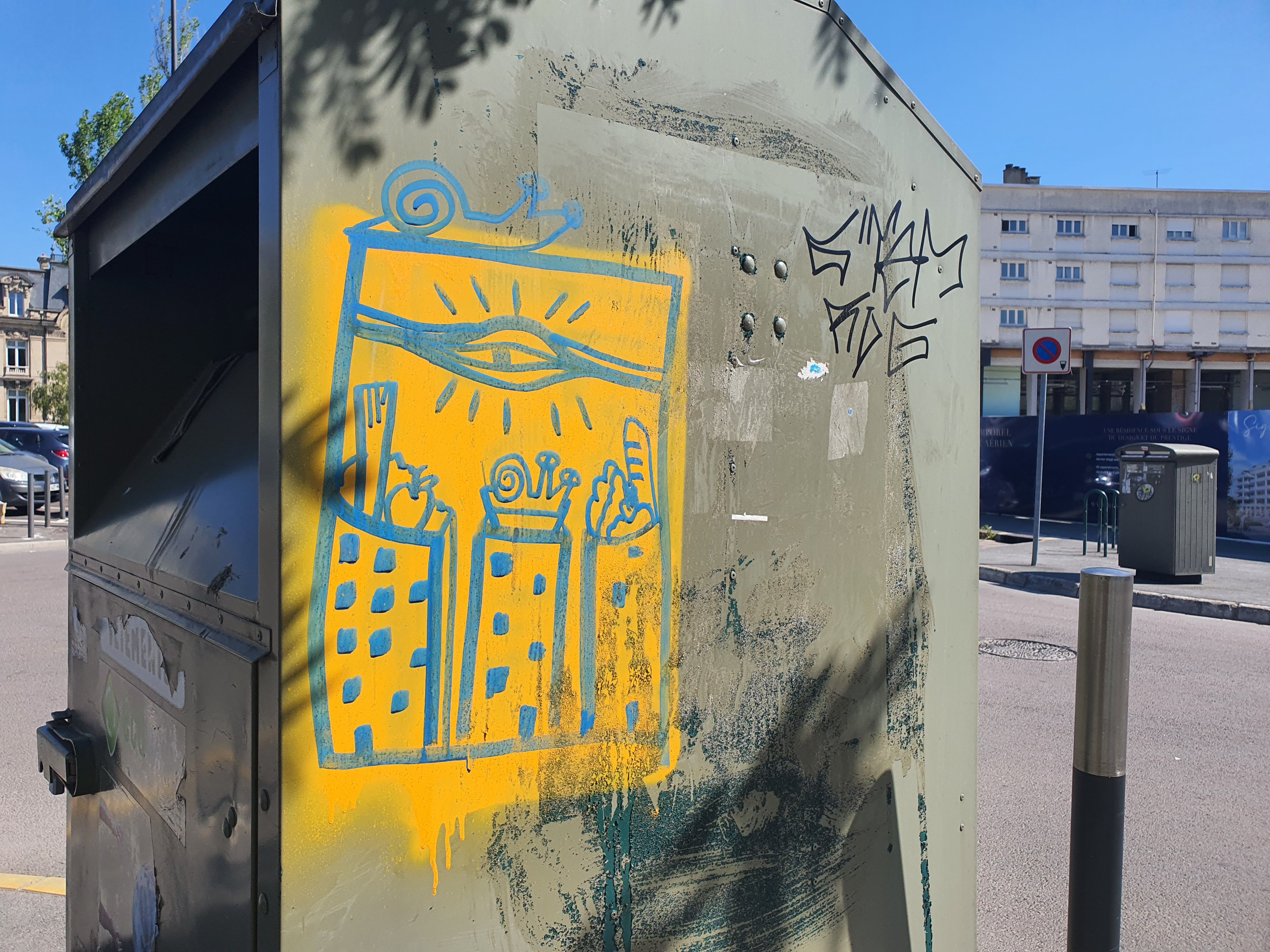 Les riverains les ont vus apparaître petit à petit dans les rues de Reims, sur les murs, sur les locaux poubelles, les boîtes aux lettres, etc. Des escargots petits ou grands dessinés au feutre.
