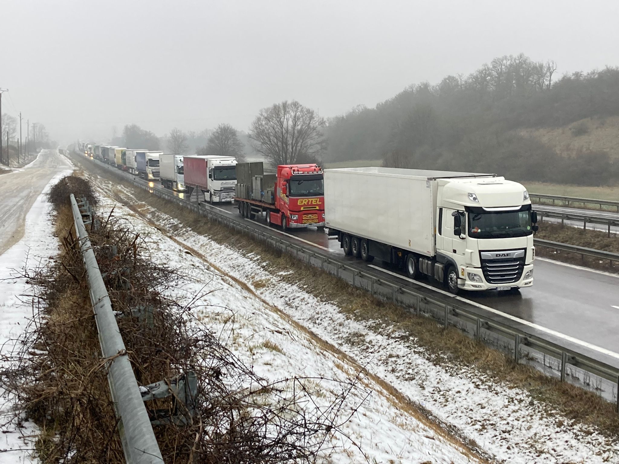 [A partager] ⚠ Étant données les conditions de circulation, l'interdiction de circulation des poids lourds de plus de 7,5 tonnes sur l'ensemble du réseau routier national et concédé en Grand Est est prolongée jusque 12h00. https://t.co/99kjVb0STF