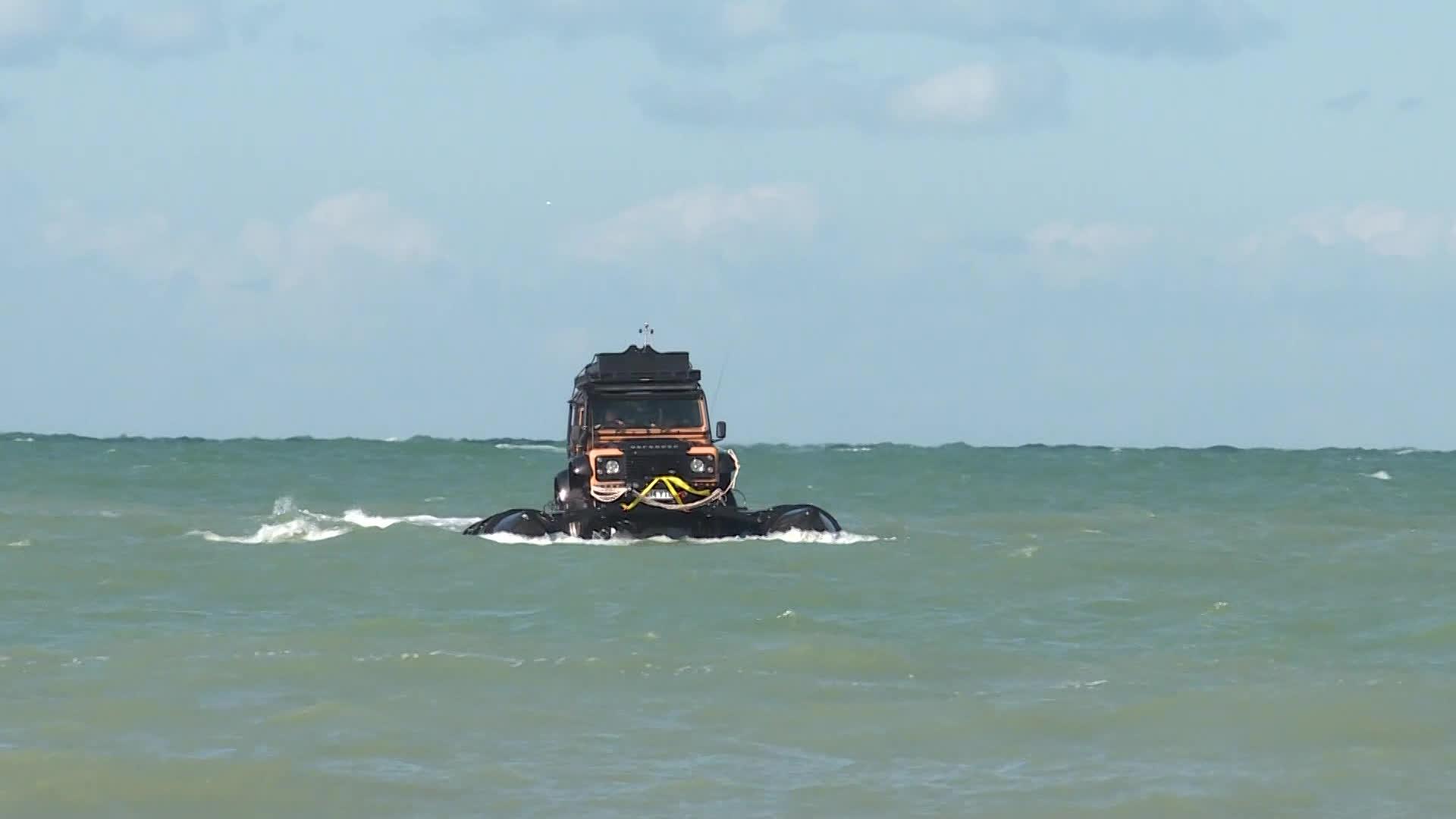 Trois Anglais Jeff Willner, Steve Brooks et Mikael Strandberg ont traversé ce samedi 23 septembre la Manche sur deux véhicules amphibies pour rejoindre Sangatte, depuis Douvres. Partis à 11h00, heure française, ils sont arrivés à Sangatte à 15h00. Spectacle garanti.