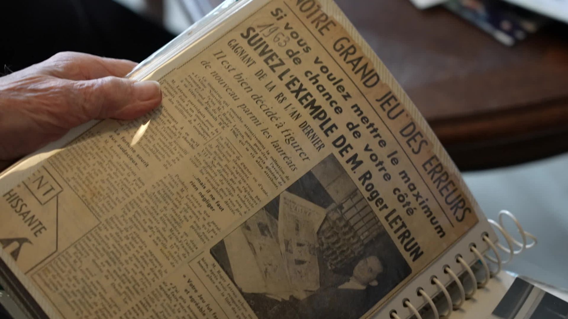 Ensemble, ils consultent un album d’archives, fait de photos et d’extraits de journaux, "toutes ses reliques", sourit Roger. On y trouve son permis de conduire, ou un article de presse locale soigneusement découpé et plastifié : une voiture remportée à la suite d'un concours organisé autour des plus beaux mariages.