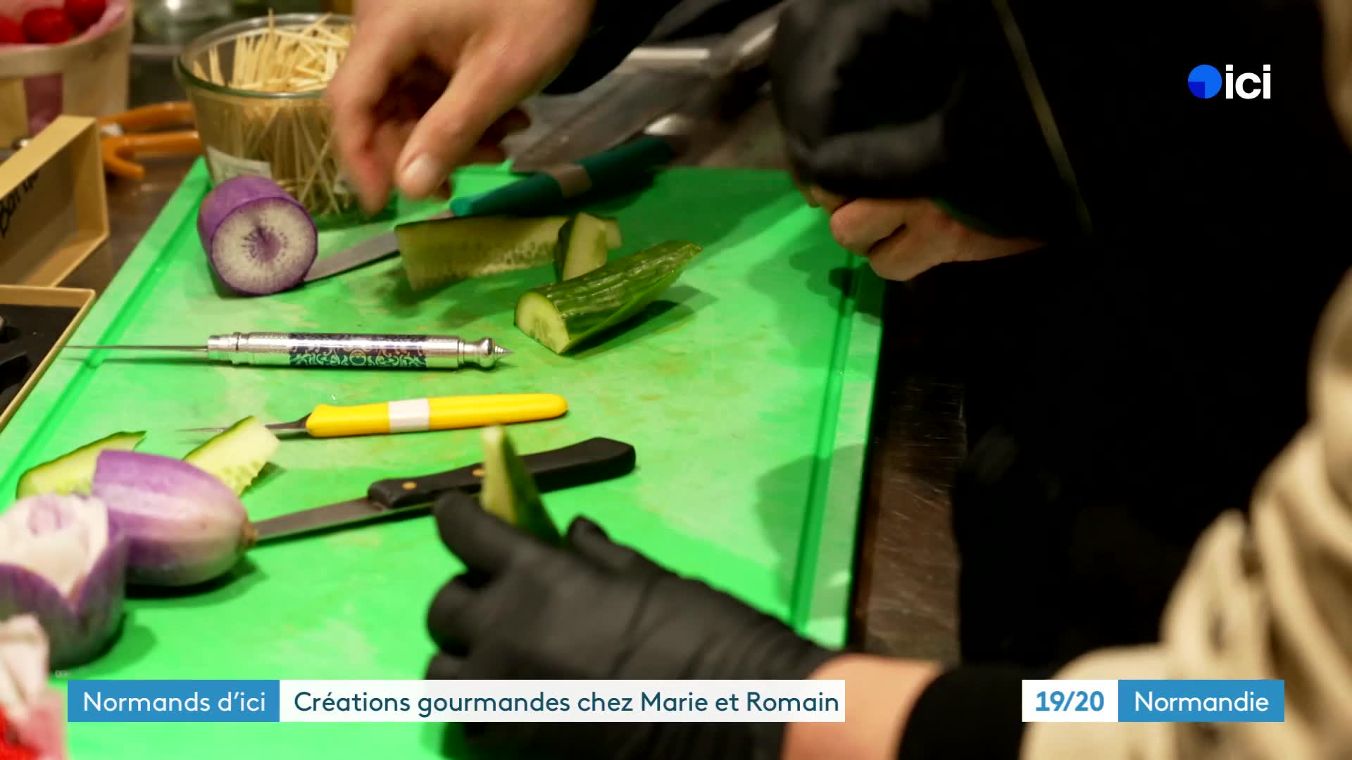 Première étape de la série « Normands d’ici » : Gisors. Primeurs dans le centre-ville, Marie et Romain Hamon transforment les radis en roses et les concombres en feuille d’arbre. Leur marque de fabrique : théâtraliser leurs produits et en faire des création artistiques (et comestibles).
