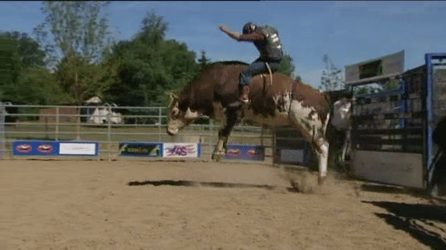 Vous avez toujours rêvé de tenir quelques secondes sur le dos d'un taureau déchaîné ? Comme les cow-boys ? C'est possible ! Rendez-vous à Glos-la ferrière, dans l'Orne,au 4S ranch. Sandrine et Stefano élèvent des taureaux sportifs... et organisent des stages !