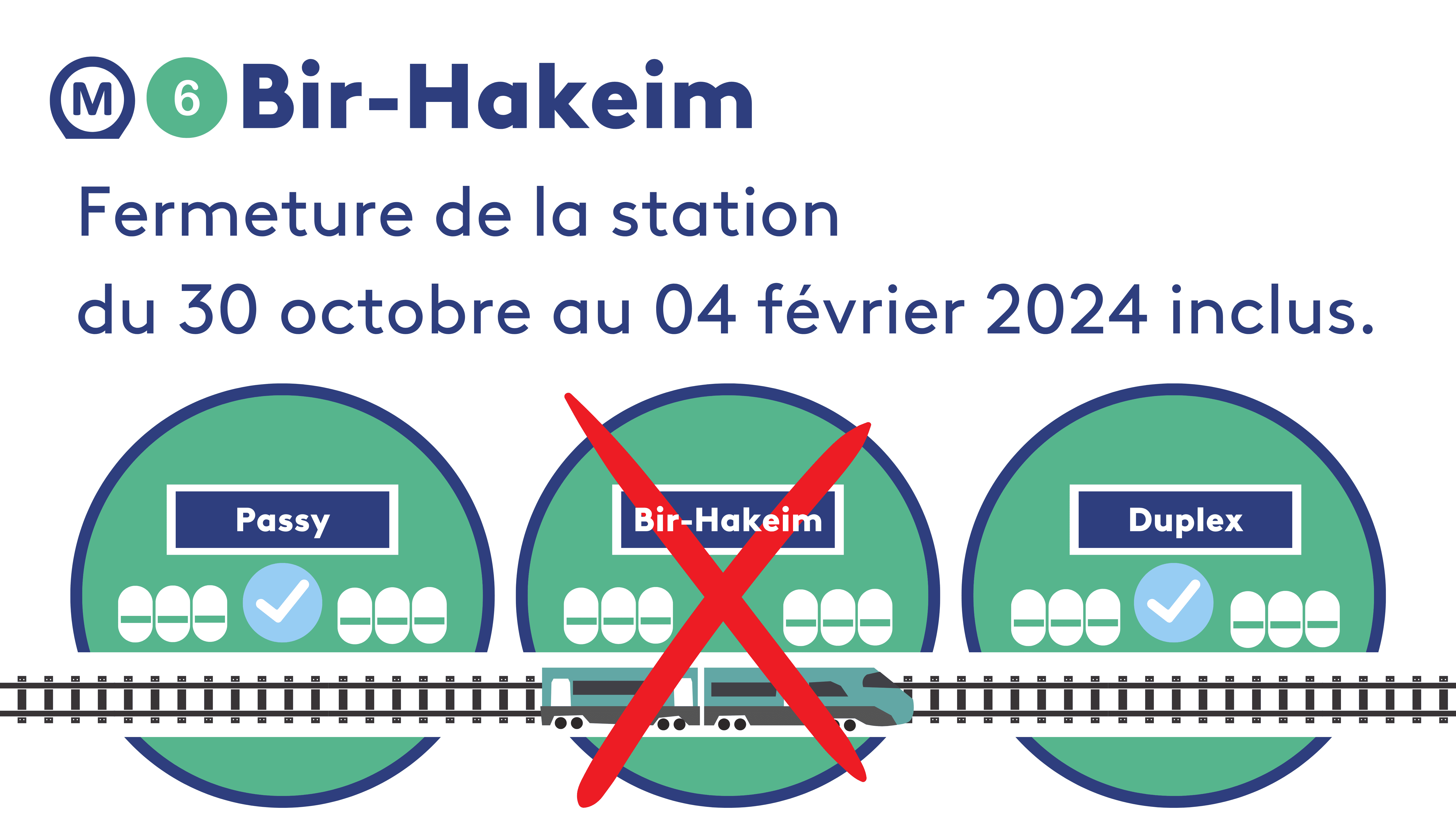Sur la ligne 6, la station Bir-Hakeim ne sera pas desservie à partir du 30 novembre et jusqu'à février 2024. La RATP indique que "la correspondance vers les quais du RER C" ne sera pas assurée durant toute cette période.
