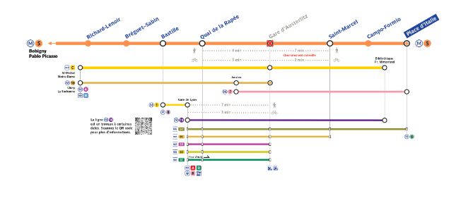 La régie précise que la ligne 10 et le RER C qui desservent également la gare restent fonctionnels pendant les travaux. Ils comprennent une rénovation des quais et une reconfiguration d'une salle d'échanges. Ils ont démarré en novembre dernier et devraient se terminer fin 2027.
