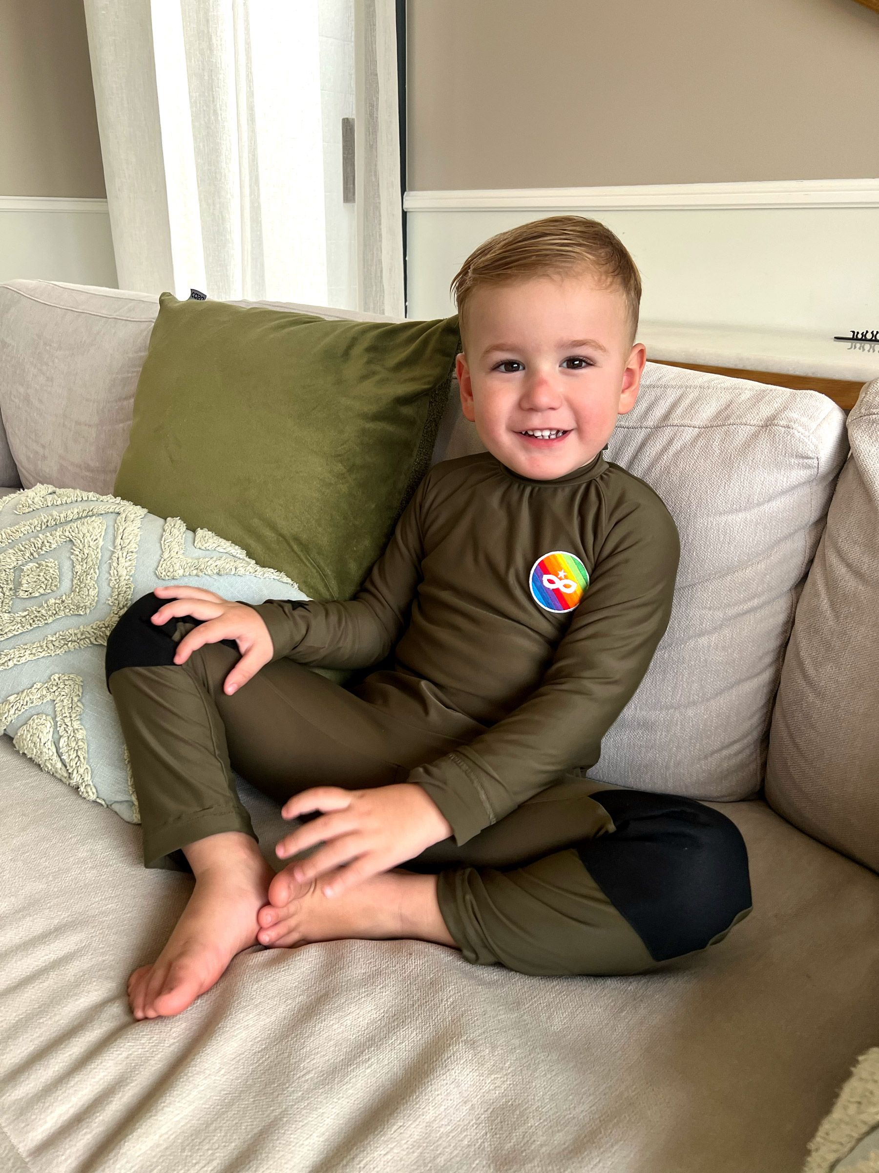 "Certains sont plutôt hyposensibles comme Tommy, lui n'était à l'aise qu'avec des combinaisons anti UV. J'ai donc fait appel à une couturière locale pour confectionner des combinaisons pratiques que notre fils a tout de suite adoptées. Cela nous a simplifié la vie. Je me suis dit qu'il y avait quelque chose à faire."